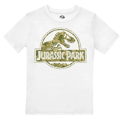 Jurassic Park Boy's Dino Camo T Shirt, White, 7 8 Years