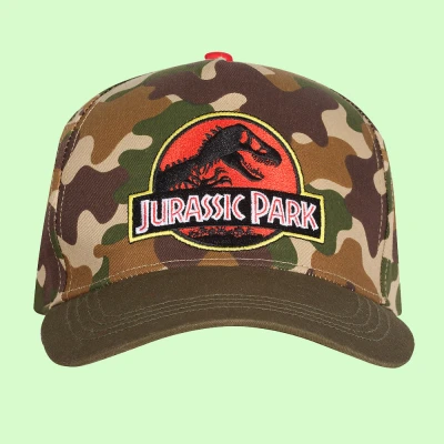 Step into the wild with this Jurassic Park camo baseball cap, designed in a forest/brown camouflage pattern that perfectly complements the iconic Jurassic Park logo. Whether you're trekking through the jungle or just showing off your love for the classic film, this cap is a must-have for any dinosaur enthusiast. The earthy tones of the camouflage design make it versatile, while the bold Jurassic Park logo stands out, making a statement that’s perfect for fans of the franchise. It’s an ideal accessory for everyday wear, combining style with a nod to one of cinema’s greatest adventures. Crafted for both comfort and durability, this officially licensed Jurassic Park cap ensures a great fit for all, making it the perfect addition to your collection or a standout gift for any fan. Show your love for the park in style!