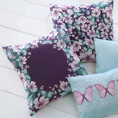 Decorative floral and butterfly print cushion cover with inner pad Dimensions: 17x17 inches (43x43 cm) Hidden zip to wash or replace the inner cushion pad Material: 100% polyester Care instructions: machine washable 40°C Inner pad included Two different patterns on both sides of the cushion cover