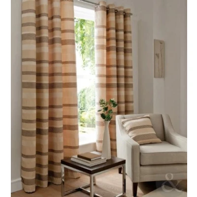 Just Contempo Striped Chenille Lined Eyelet Curtains, Natural, 66x72 inches