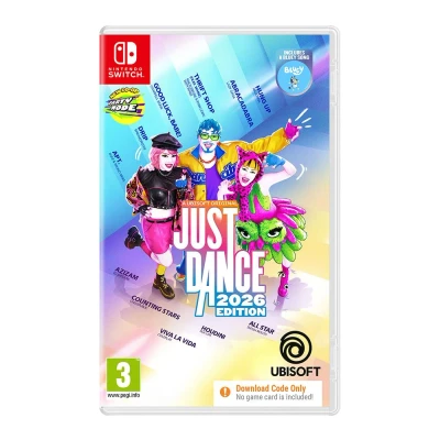 Download code only. This product does not contain a game card or disc. Internet connection, Ubisoft Account, applicable console account, and platform subscription (sold separately) required. Bluey joins Just Dance 2026, with an iconic gameplay map, where families can dance together alongside Bluey. ENJOY 40 HOT NEW SONGS From the hottest hits to timeless classics, there's a song for everyone and every moment in our all-new tracklist featuring: - "APT." by ROSÉ & Bruno Mars - "Houdini" by Dua Lipa - "Counting Stars" by OneRepublic - "Hung Up" by Madonna - "All Star" by Smash Mouth - And many more! BRING YOUR FRIENDS AND FAMILY TO THE PARTY Dance solo, in co-op, or get competitive: - Dance with up to 6 players in local multiplayer! - Team up for an unpredictable dance showdown in the new Party Mode! - Or compete to prove who has the best moves in Challenge Mode! There's a Just Dance experience for everyone: - Use your whole body with Camera Controller Mode on your phone.** - Get active with Workout Mode, tracking calories burned while playing. - Dance to hundreds of songs with 1 month free access to Just Dance+.* - Access all the content you may already own from the 2023, 2024, 2025, or 2026 Editions of Just Dance, along with your Music Packs and Just Dance+ subscription, all in one central hub on the same console! *Just Dance+ is a streaming service, playable via Just Dance 2023, 2024, 2025, or 2026 Editions, that grants access to additional songs. Requires the connection to a Ubisoft Account (age restrictions apply depending on your country of residence to create one), permanent internet access, and the payment of a fee and/or and ongoing subscription fee. Auto-renewal may be activated during the purchase. **A smartphone with the free Just Dance Controller app is required to track your moves – no additional accessories required! Requires iOS 14.4 or higher OR Android 9 or higher., Platforms: Nintendo Switch