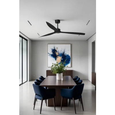 The fan features a slim profile that seamlessly integrates into various interior styles, redefining what a ceiling fan can be. Its matt black body and blades exude a sophisticated elegance, making it an eye-catching focal point in any room. Whether you have a minimalist or eclectic décor, this ceiling fan fits naturally into your space.