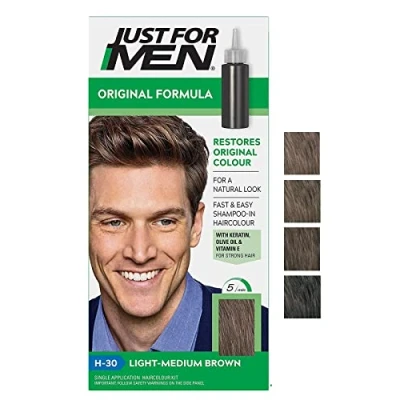 Just For Men Original Formula Light Medium Brown Hair Dye, Targets Only The Grey Hairs, Restoring Colour a Natural Look H30