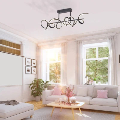 JUST LIGHT. Curls LED ceiling lamp, black, metal, 82 cm long, dimmable