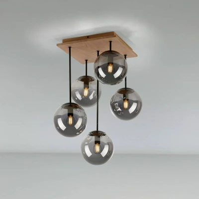 JUST LIGHT. Green Widow ceiling light, glass globes, 5 bulb