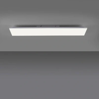 Unique lighting experiences at the touch of a button - LED ceiling light Yukon The rectangular LED ceiling light Yukon made of aluminum and iron is equipped with a satin plastic diffuser, which allows the light to radiate glare-free and evenly into the environment. The included IR remote control has different functions, so that the light can be switched via it not only, but also dimmed continuously. In addition, there are 12 pre-installed modes on the remote control, which create different lighting moods at the touch of a button, such as a sunset. In addition to a dynamic color change, the light color can also be set constantly and mixed as desired, even different shades of white are no problem here, so that Yukon creates great lighting experiences in the room. Special features - controllable with the included remote control (incl. memory function) - digital color change (dynamic or constant) - CCT function (light color adjustable from warm white to universal white) - 12 pre-installed modes selectable, for example forest walk or sunset - dimmable