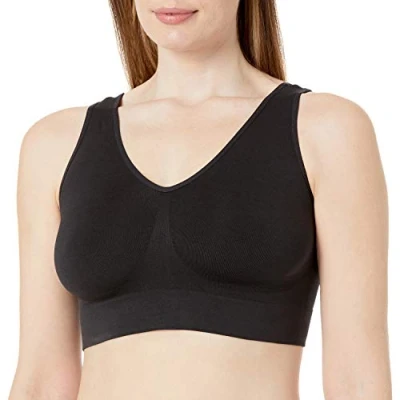 Silky seamless fabric stretches four ways for flexible fit. Plus, it wicks away moisture to keep you cool and dry Knit-in light support adds subtle under-bust shaping Wide straps and fuller back offer gentle all-around smoothing Wider bottom band helps prevent dig-in and roll-up No wires, no seams, no foam padding...nothing but soothing softness