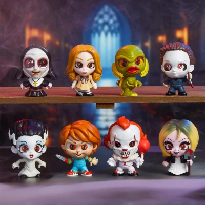 NOTE: All mystery boxes are random and cannot guarantee any given character. Refunds cannot be accepted for opened boxes unless the product is faulty. Gigantic chills come in tiny packages with these Tiny Nightmares Figurines, straight from the shadows of cult horror classics. Each mystery 3-inch figure reveals a wickedly detailed terror, complete with Terrif-Eyes that echo unforgettable moments from legendary films. Whether it’s Michael Myers standing silently with his knife or Pennywise lurking with a sinister grin, these figures bring iconic horror villains to your collection with undeniable creep factor. Meticulously designed, these mini horrors feature chilling characters from M3GAN to the Bride of Frankenstein, the Creature from the Black Lagoon, and more, all packed with personality and eerie charm. Their small scale means they fit neatly into themed displays or spooky seasonal settings, offering a bite-sized scare that holds a huge presence on any shelf or mantel. Brimming with spine-tingling detail and character, these quirky collectibles catch the eye of horror fans and memorabilia enthusiasts alike. Whether creating a cinematic horror scene or hunting out unique knick-knacks that stand out, these Tiny Nightmares figurines provide a playful yet unsettling vibe that stays with you long after dark.