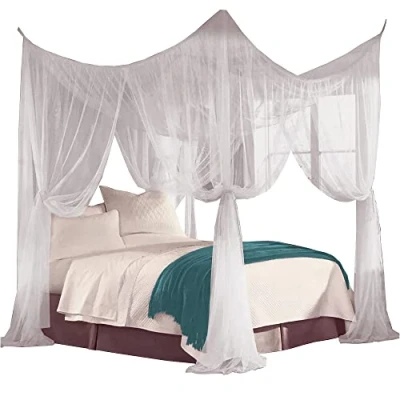 Just Relax Four Corner Post Elegant Mosquito Net Bed Canopy Set, White, Full/Queen/King