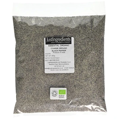 JustIngredients Essentials Organic Black Pepper Coarse Ground, 500 g
