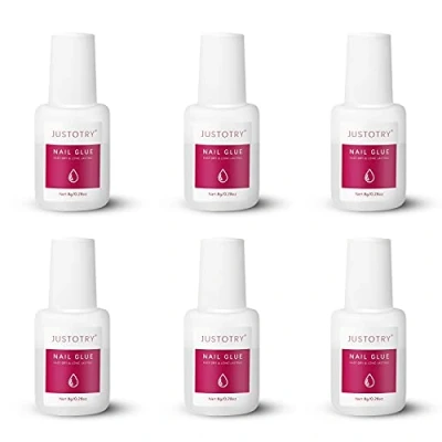 JUSTOTRY 6 Pcs Professional Strong Nail Glue for Acrylic Tips Extra and Press on Nails Long Lasting Fast Bond & Super Glue, Broken Nail, False Adhesive