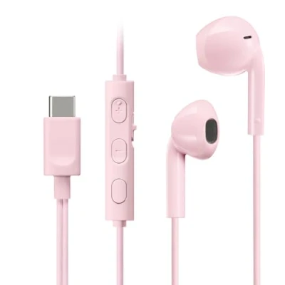 JVC HA FR17UC P Bud Type USB C Earphones with Built in DAC for Powerful and Crystal Clear Sound, Practical Microphone 3 Button Remote Control Extremely Compact Design (Pink)