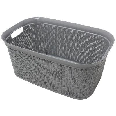 JVL 13 352GY Knit Design Loop Plastic Rectangular Linen Washing Basket with Handles, Grey, 36.5 x 56.5 25.5 cm, 38 Litres