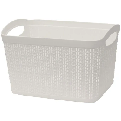 JVL 13 353WH Knit Design Loop Plastic Rectangular Small Storage Basket with Handles, Ivory, 20 x 26 17 cm, 6.6 Litres