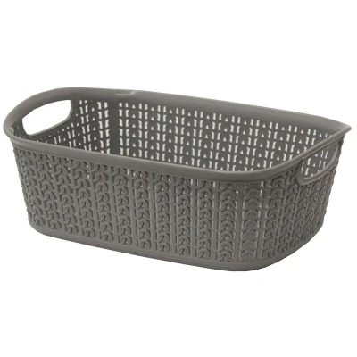 JVL 13 354GY Knit Design Loop Plastic Rectangular Small Storage Basket with Handles, Grey, 20 x 26 9.5 cm, 3 Litres