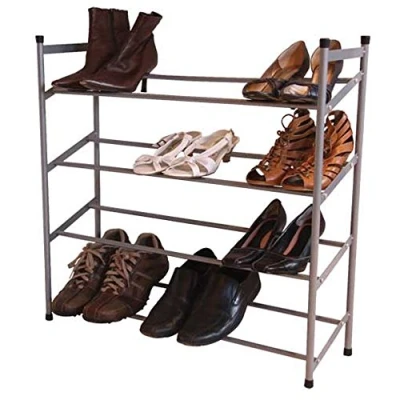 4 Tier Chrome Frame Stackable Extendable Shoe Rack Storage Organiser