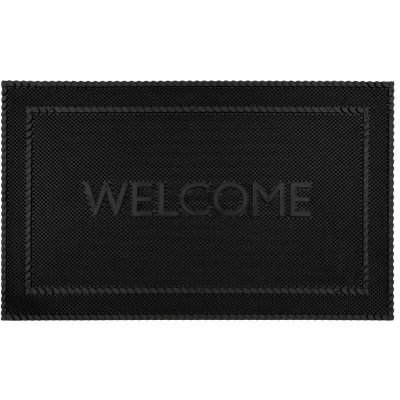 General description Our Alvaro Welcome scraper mat features flexible rubber studs that trap dirt and grit from shoes, while the raised surface gets into the sole’s grooves, removing excess mud and dirt, leaving your home clean and tidy. The decorative design and welcome message provide a pleasant greeting for your visitors, complemented by the rope-edged detail for the perfect finishing touch. This mat is low maintenance; simply shake or hose it down to clean. Made from durable rubber, it is suitable for use in all weather conditions. Technical specifications Dimensions: 45x75 cm Material: Rubber Usage Ideal for outdoor use Practically maintenance-free; simply shake or hose to clean