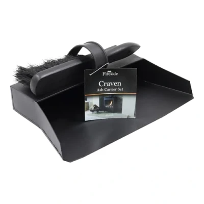 General description The Craven Ash Carrier Set is an essential fireside accessory designed to simplify the cleaning of your fireplace. Crafted from durable steel with a sleek black powder-coated finish, this set combines functionality with style, making it suitable for both traditional and modern settings. Technical specifications Material: Steel with black powder-coated finish Dimensions: H: 13 cm x W: 35 cm x D: 21 cm approx. Usage The ash carrier features deep sides and an enclosed section to hold ashes securely while cleaning. The included brush is perfect for sweeping away cooled coal dust. Both items nest inside each other for convenient storage when not in use. Easy to clean; simply remove excess ashes and wipe with a damp cloth or lightly dust.