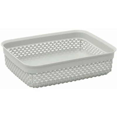 General description The Droplette Design Plastic Storage Basket in Ice Grey combines style and practicality. Featuring an attractive droplet design, this storage basket is perfect for any home décor. It serves as an essential item to help keep your space organized and clutter-free, offering versatile storage options for various items such as laundry products, toiletries, jewelry, and makeup. Technical specifications Dimensions: H: 7 cm x W: 25 cm x D: 20 cm Capacity: 2.2 litres Material: High-quality, durable plastic Features: Rust-free and BPA-free Usage Ideal for storing items in the kitchen, bedroom, bathroom, laundry room, nursery, and more Multi-functional storage for various items including nail varnish, toiletries, jewelry, herbs, and packets of rice Other information Easy to clean: simply dust or wipe with a damp cloth Good ventilation to prevent musty smells