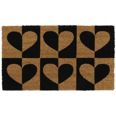 JVL Eco Friendly Latex Backed Coir Door Mat, Heart to Heart, Natural, 40 x 70 cm Approx., 02 873