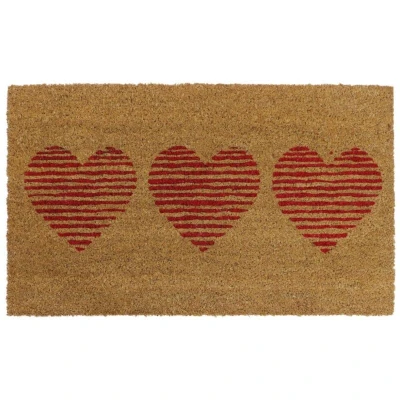 JVL Eco Friendly Latex Backed Coir Door Mat, Three Hearts, Natural, 45 x 75 cm Approx., 02 884