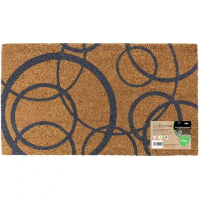 General description JVL’s Eco-Friendly Latex Backed Coir Entrance Doormat features a charming ‘Circles’ design, making it a stylish addition to your home. Crafted from 100% natural coir and natural latex, this doormat is designed for durability, functionality, and sustainability. It is suitable for all weather conditions and versatile for both indoor and outdoor use, helping to keep your floors cleaner for longer. Technical specifications Dimensions: 40x70cm Pile depth: 15mm Material: 100% natural coir with rubber latex backing Usage Ideal for use at the door, porch, greenhouse, shed, conservatory, patio, or any entrance area. Easy to maintain; simply shake or brush to clean. Other information 100% biodegradable; natural coir disintegrates within one year, while the latex backing breaks down within five years, depending on soil conditions. Some shedding may occur when new. Colors may vary slightly from the pictures shown as this is a natural product. Our packaging is recyclable.