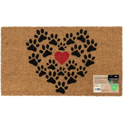 JVL Eco Friendly Latex Backed Coir Entrance Doormat, 40x70cm Heart Paws