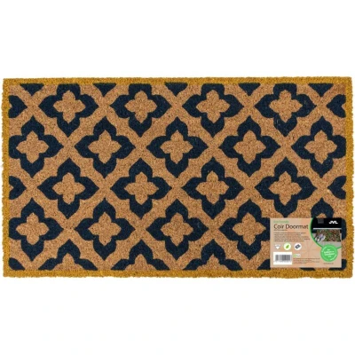 General description JVL’s Eco-Friendly Latex Backed Coir Entrance Doormat combines durability, functionality, and sustainability. Crafted from 100% natural coir and natural latex, this mat utilizes renewable resources to deliver premium quality. The 'Vintage' design adds a warm touch, making it a charming addition to your home. Suitable for all weather conditions, it is versatile for both indoor and outdoor use, helping to keep floors cleaner for longer. Technical specifications Dimensions: 40x70 cm Pile depth: 15 mm Material: 100% natural coir with rubber latex backing Biodegradability: Coir disintegrates within one year; latex backing breaks down within five years, depending on soil conditions Usage Ideal for use at the door, porch, greenhouse, shed, conservatory, patio, or any entrance Easy to maintain: simply shake or brush to clean Other information Some shedding may occur when new Colors may vary slightly from the pictures shown as this is a natural product Packaging is