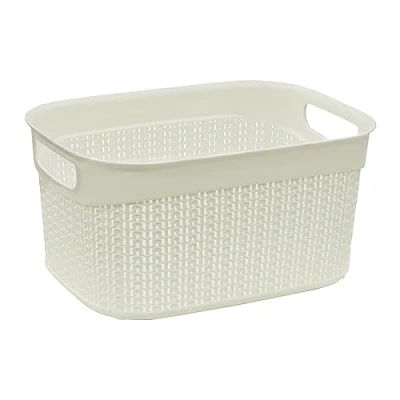 JVL Knit Design Loop 9L Plastic Storage Basket, Ivory
