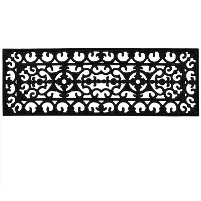 AmazonThick and durable rubber mat, ideal for outdoor steps Slip resistant, hardwearing and suitable for all weathers, making them a great mat to use all year-round It features a timeless design creating a wrought iron effect to greet your guests The shape also provides great scraping qualities to remove excess mud, plus it’s easy to clean, simply shake or hose Size: 25x75cm approx.