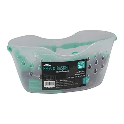 JVL Peg Basket with Built In Attachable Clothes Hook Line 36 Coloured Pegs