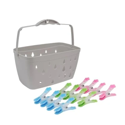 JVL Plastic Peg Basket, Grey with 24 Prism Soft Touch Flower Design Pegs, Multi