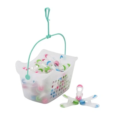 JVL Plastic Peg Basket with 48 Prism Soft Touch Mini Pegs, Multicolor, (19 216 270)