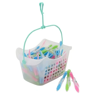 JVL Plastic Peg Basket with 72 Prism Soft touch Leaf Design Pegs