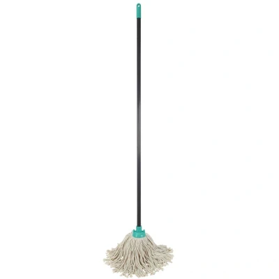 General description Take the stress out of cleaning with this Pure Cotton Traditional String Floor Mop in Turquoise/Grey. The cotton yarns are super absorbent, making it effective for cleaning both wet and dry surfaces. When dry, the mop head picks up dirt, dust, and fine particles for a thorough clean, while it absorbs moisture from spills before you clean the area. When wet, it lifts and locks in stubborn dirt, soaking up excess water to reduce the risk of slipping on freshly cleaned floors, making cleaning an effortless task. This mop is ideal for a variety of indoor surfaces including tiled, vinyl, marble, and other hard floors, providing a sparkling finish and becoming an essential item in your day-to-day cleaning tasks. Technical specifications Material: Cotton yarns Size: H: 142 cm x Dia: 7 cm approx. Color: Grey with turquoise accents Usage Used dry, the mop head picks up dirt, dust, and fine particles. When wet, it lifts and locks in stubborn dirt and soaks up excess water.