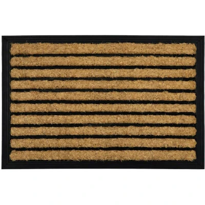 JVL Rubber Backed Tuffscrape Coir Entrance Doormat, 40x60cm, Lines