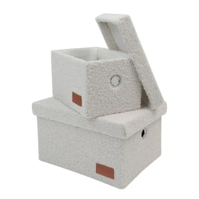 JVL Shiro Set of 2 Boucle Fabric Rectangular Storage Baskets with Lids, Practical Home Organisation, White