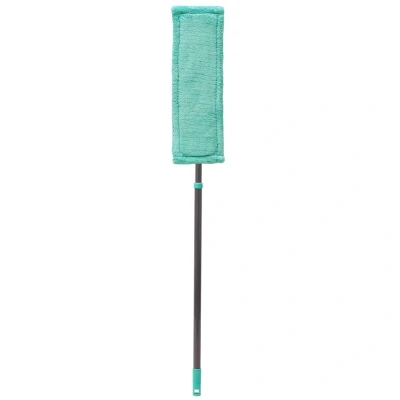 General description Our microfibre mop is designed to attract dust, dirt, and remove spills. The swivel head lays flat, making it easy to clean hard-to-reach places, and it stays flat to the floor for cleaning under large pieces of furniture. The soft, super absorbent fabric cleans both wet and dry, picking up dirt, dust, and fine particles when dry, and lifting and locking in dirt while soaking up excess water when wet. The telescopic handle adjusts to suit your height, making cleaning effortless. This mop is ideal for various indoor surfaces, including tiled, vinyl, marble, and other hard floors. Technical specifications Size: H:78-130 x W:43 x D:12 cm approx. Microfibre head is machine washable at 30°C Dry the microfibre head at room temperature Usage Use dry to sweep away fine dust and crumbs or soak up spillages Use wet to remove stains and clean floors Other information Modern style with a powder-coated finish in grey with turquoise accents Hanging loop at the end of the handle