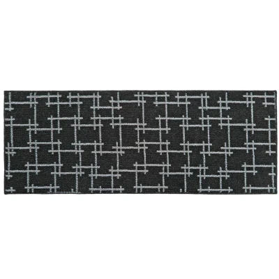 JVL Vector Machine Washable Latex Backed Runner Doormat, 57x150cm, Black