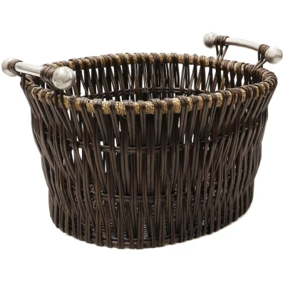 JVL Vertical Weave Oval Log Basket with Metal Handles, Brown, Medium