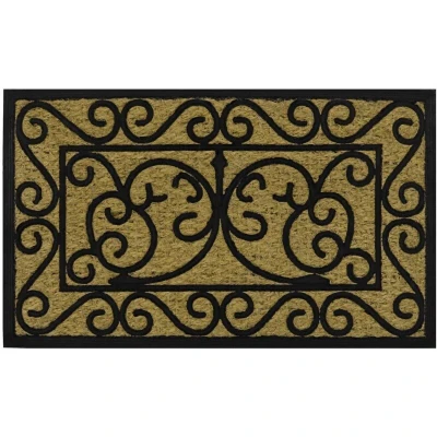 JVL Woven Coir Tuffscrape Doormat, 45x75cm, Scroll