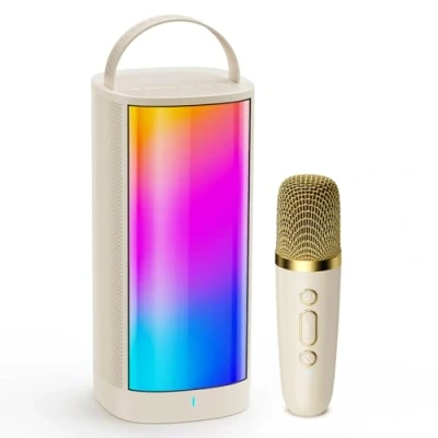 【All-in-One Karaoke Machine with Dual Microphones】This mini karaoke machine for kids and adults includes a compact speaker, 2 wireless microphones, and fun voice-changing features—perfect for home karaoke, family entertainment, or outdoor mini parties. Whether for solo singing or fun duets, it brings joy to every gathering. 【Superior Stereo Sound with Volume and Clarity】Equipped with a high-performance audio driver and DSP chip, this kids karaoke speaker delivers loud, balanced, and distortion-free sound. Clear vocals and dynamic bass make it suitable not just for children, but also for teens and parents to enjoy immersive music together. 【Bluetooth 5.0 & Multi-Device Compatibility】Connect easily to mobile phones, tablets, iPads, and PCs via Bluetooth 5.0. It also supports USB flash drives, TF cards, AUX-in, and headphone output—allowing kids to practice quietly or sing along to music from TikTok, YouTube, or Spotify without interruptions. 【LED Light Effects & Magic Voice Modes】The built-in RGB LED lights flash and change colors in sync with your music, creating an exciting visual experience. With four voice effects (Baby, Female, Monster, Original), this karaoke machine makes singing more playful and is sure to keep children entertained for hours. 【Fantastic Gift for Kids Aged 3 to 12+】Stylish, fun, and easy to use, this karaoke machine is a perfect gift for girls and boys. Whether it's for a birthday, Christmas, Halloween, Easter, or school party, it turns any space into a mini stage and helps build kids' confidence through music and performance.