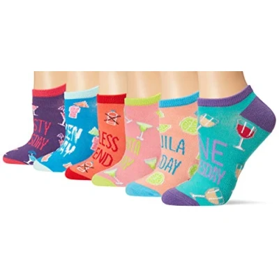 K. Bell Women's Fun Food & Drink Low Cut Socks 6 Pairs Cool Cute Novelty Gifts Casual, Happy Hour (Pink Assorted), 3.5 9 UK