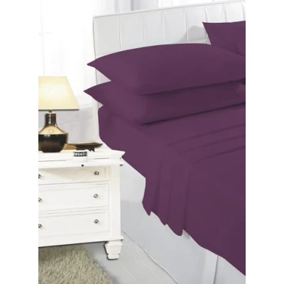 K Collection Percale Easy Care Polycotton Fitted Sheets Single Double King Super Pillowcases (King, Aubergine)