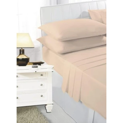 K Collection Percale Easy Care Polycotton Fitted Sheets Single Double King Super Pillowcases (Single, Beige)