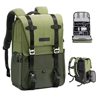 K&F Concept 20L Camera Backpack for Photographers Large Capacity PU Leather Bags with Raincover, 15.6 Inch Laptop Compartment Drone