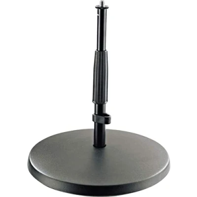 Low stand with a heavy flat round cast iron base for maximum stability Made of steel Anti-vibration rubber insert for noise filtration 3/8-inch threaded connector Available in black colour