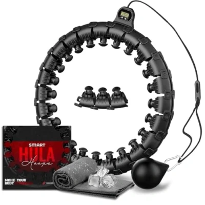 2-in-1: FITNESS AND MASSAGE : Soft rubber massage heads and magnetic therapy disks deeply massage muscles while hooping, aiding fat burn and relieving fatigue. Ideal for postpartum, office workers, and low fitness levels. EASY TO USE AND NEVER FALLS : Easy to use, secure, and effective! Smart Hula Hoop stays in place, features magnetic disks, and offers a 360° massage effect for doubled fitness benefits. REMOVABLE DESIGN : Easily disassemble it by pressing a button to customize the size for your waist circumference. Adjust the hoop circle to 15 to 27 parts for a perfect fit. These parts are easy to disassemble and store. SAY BYE TO CALORIES : Burn body fat and achieve your ideal figure with ease. Just 15 minutes a day can help you lose excess waist fat, enhance your waistline, improve flexibility, and promote healthy digestion, leading to a healthier lifestyle. SUITABLE FOR EVERYONE : Versatile hula hoop suits all skill levels & body types. Customizable segments for waist size. Ideal for adults, kids, overweight individuals, and athletes.