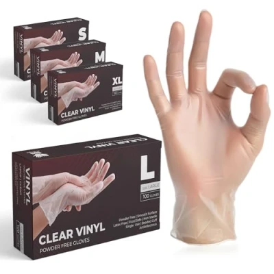 DISPOSABLE GLOVES: Vinyl gloves with a powder-free design help minimize the risk of contamination. These gloves disposable soft, comfortable, and flexible, offering a secure fit for most hand sizes while allowing a full range of motion. LATEX FREE AND POWDER FREE GLOVES: vinyl powder-free exam clear gloves can be worn on either hand, fitting both men and women. Available in sizes s, m, l, and xl, these gloves provide a comfortable and versatile option for various needs. CLEAR VINYL GLOVES: These gloves are perfect for a variety of tasks, including cooking, gardening, and cleaning. Made from high-quality materials, they are disposable and suitable for both medical and professional use. MULTIPLE-USE: Rubber gloves are designed for versatility, making them ideal for various professions such as law enforcement, food service, hair coloring, painting, and home improvement tasks. HIGH QUALITY STANDARD: This food safe gloves no latex, no powder, without the use of latex gloves or powder free gloves, your body will be kept in optimal.