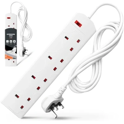 【Heavy Duty】 4 Gang Socket Extension Lead with 13A Fuse Plug 【Versatile Cord】 – 2m Power Cord Comprised Of Heavy-Duty Cable Housed In A Durable Pvc Insulation And Jacket Is Strong Enough To Last A Lifetime And Pliable Enough To Easily Fully Extend The Space-Saving Design Of The Flat Plug Is Engineered To Allow The Power Cord To Sit Close To The Wall 【Design】 Slim Design to Discreetly Place Anywhere 【Quality Standard 】Manufactured to British Standard BS1363 - UKCA Certified 【Packaging 】Wall Mounting Capable with Hole Hangs 【Lifetime Service】: Once our power strips have any quality problems, we will provide unconditional replacement or refund services for life.